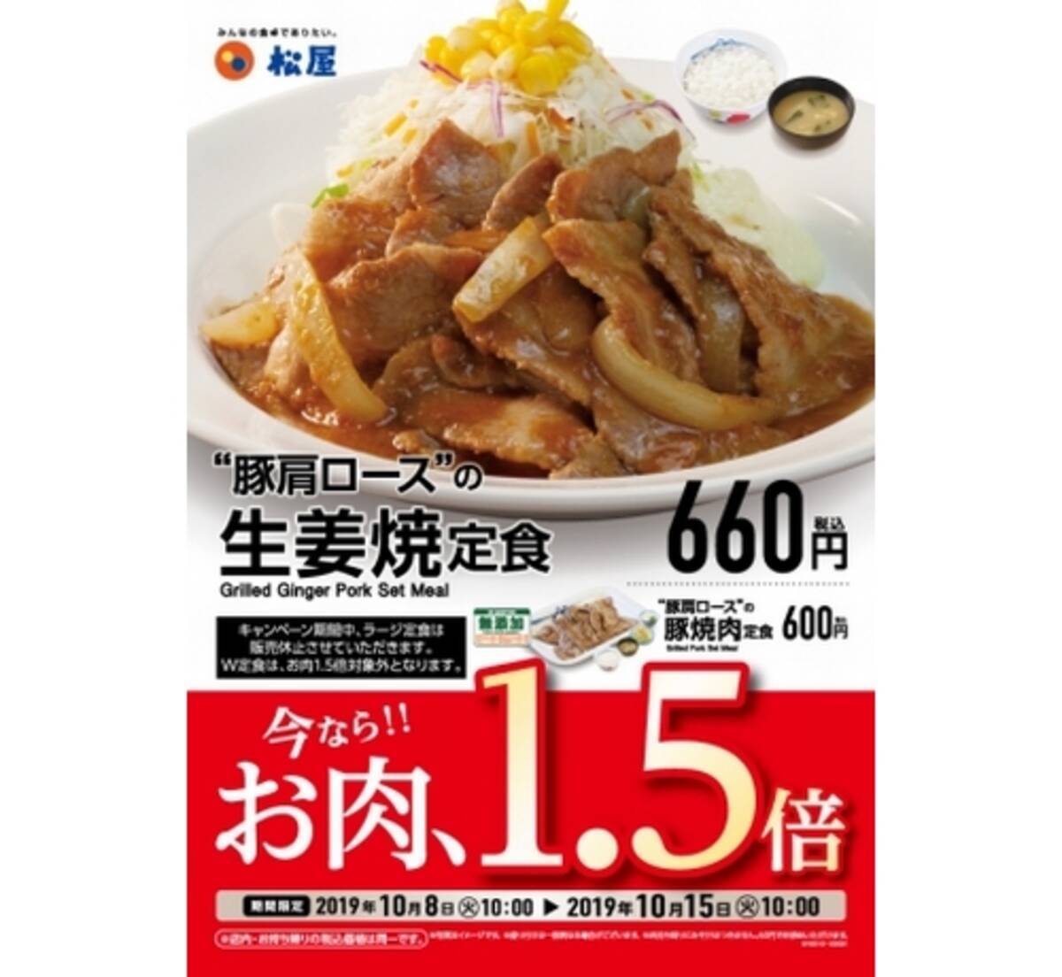 松屋 生姜焼き定食 豚焼肉定食 がお肉1 5倍に 19年10月3日 エキサイトニュース